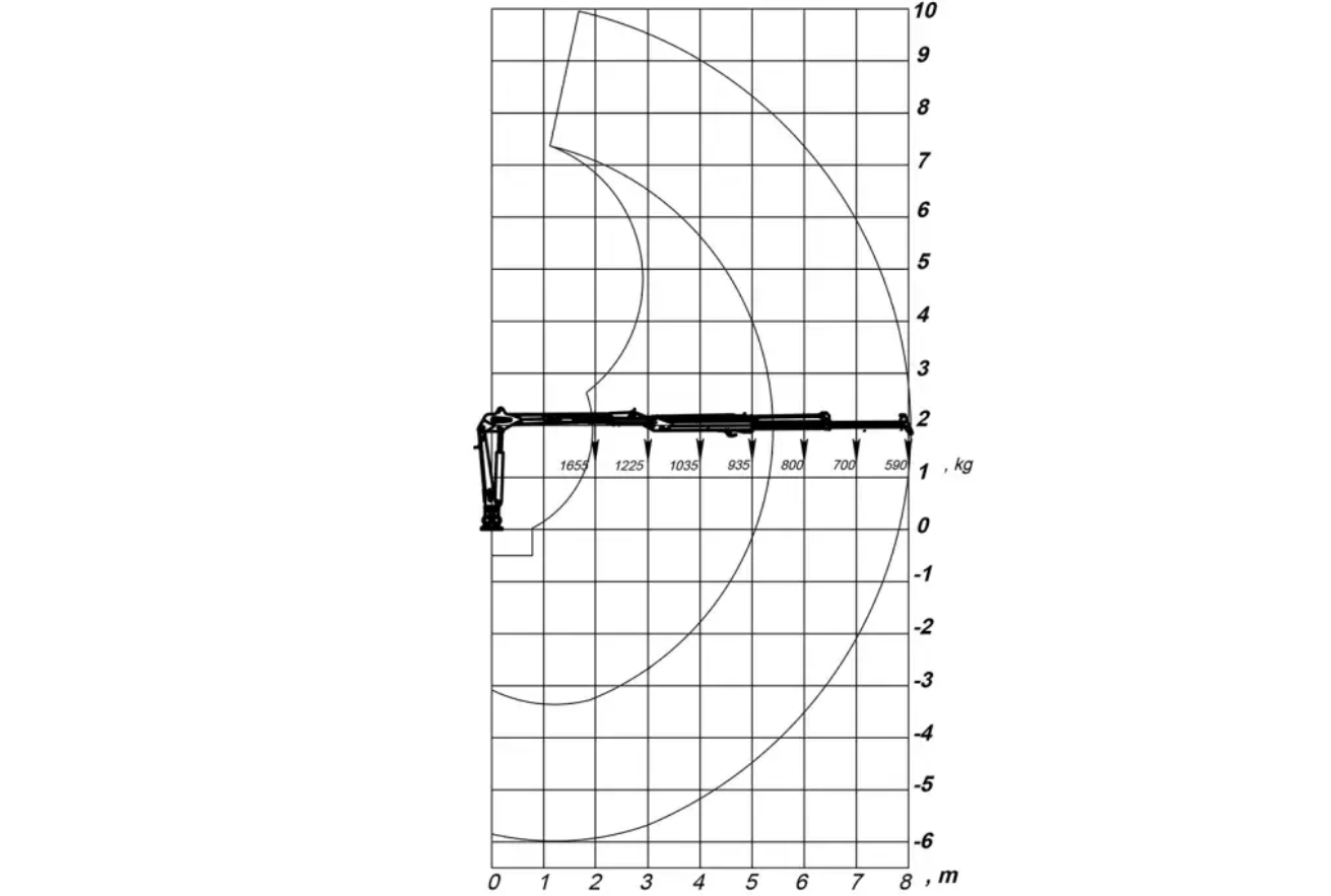 Žeriav Z má dosah 8,0 m s jedným teleskopom 2,65 m. Pri plnej dĺžke môže žeriav zdvihnúť 590 kg bez drapáka a rotátora.
