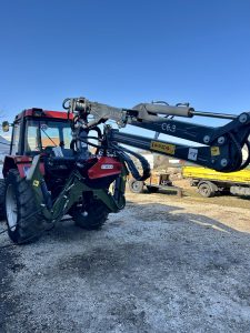 Žeriav sa dá ľahko zložiť z prívesu a namontovať na trojbodový záves traktora.